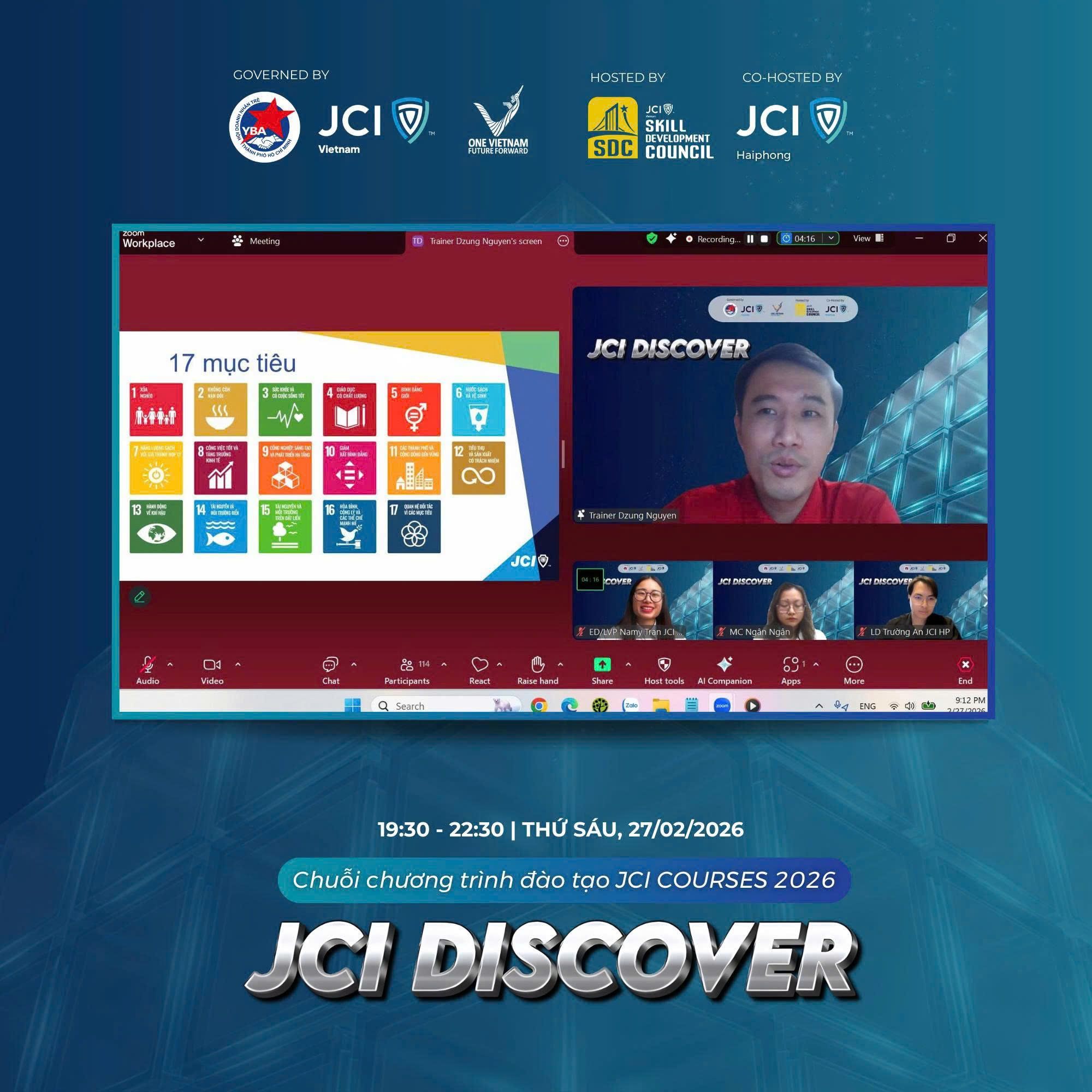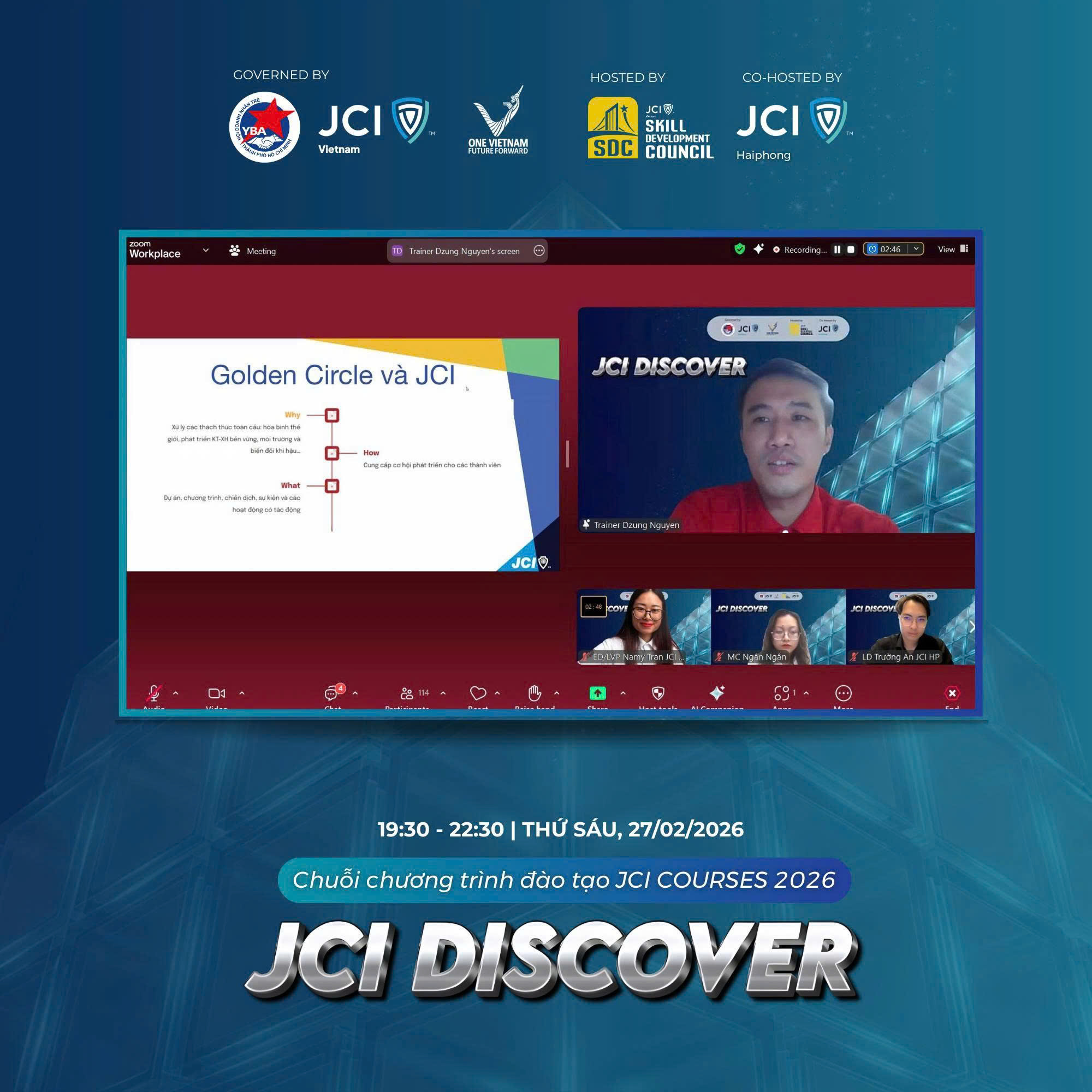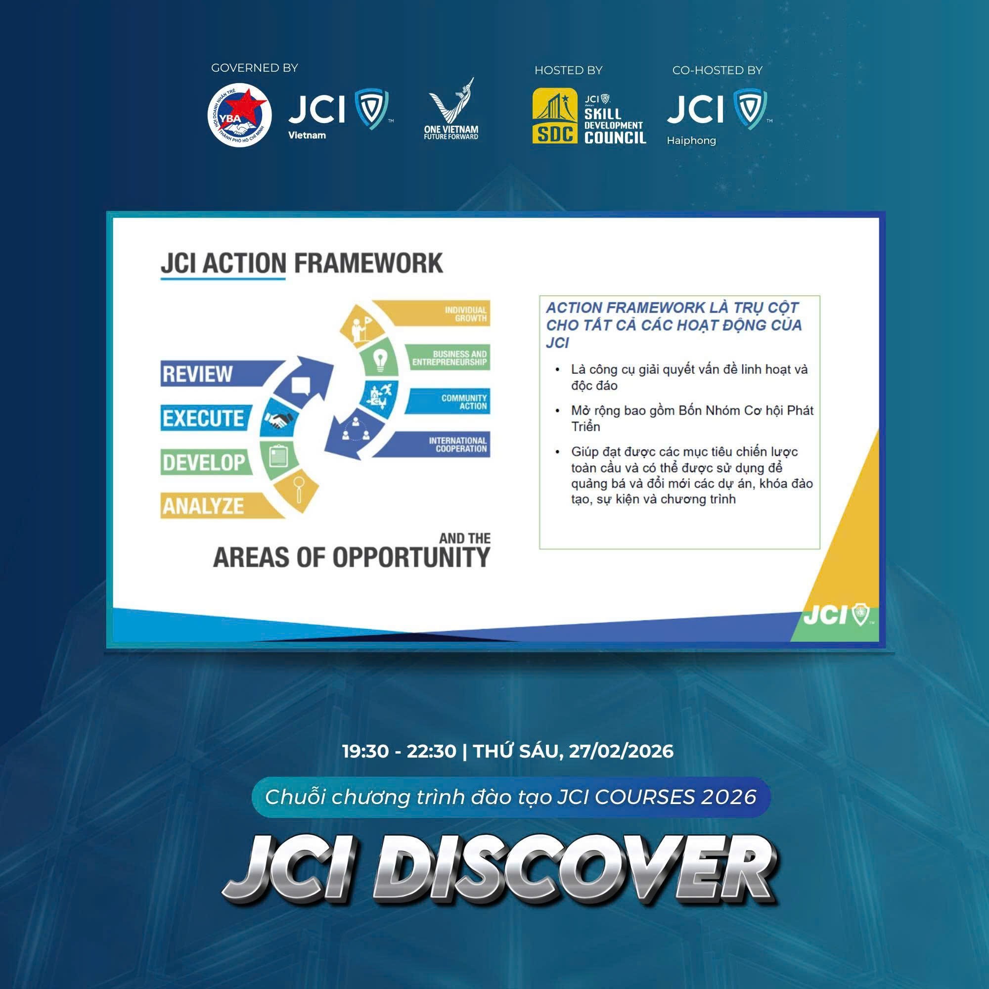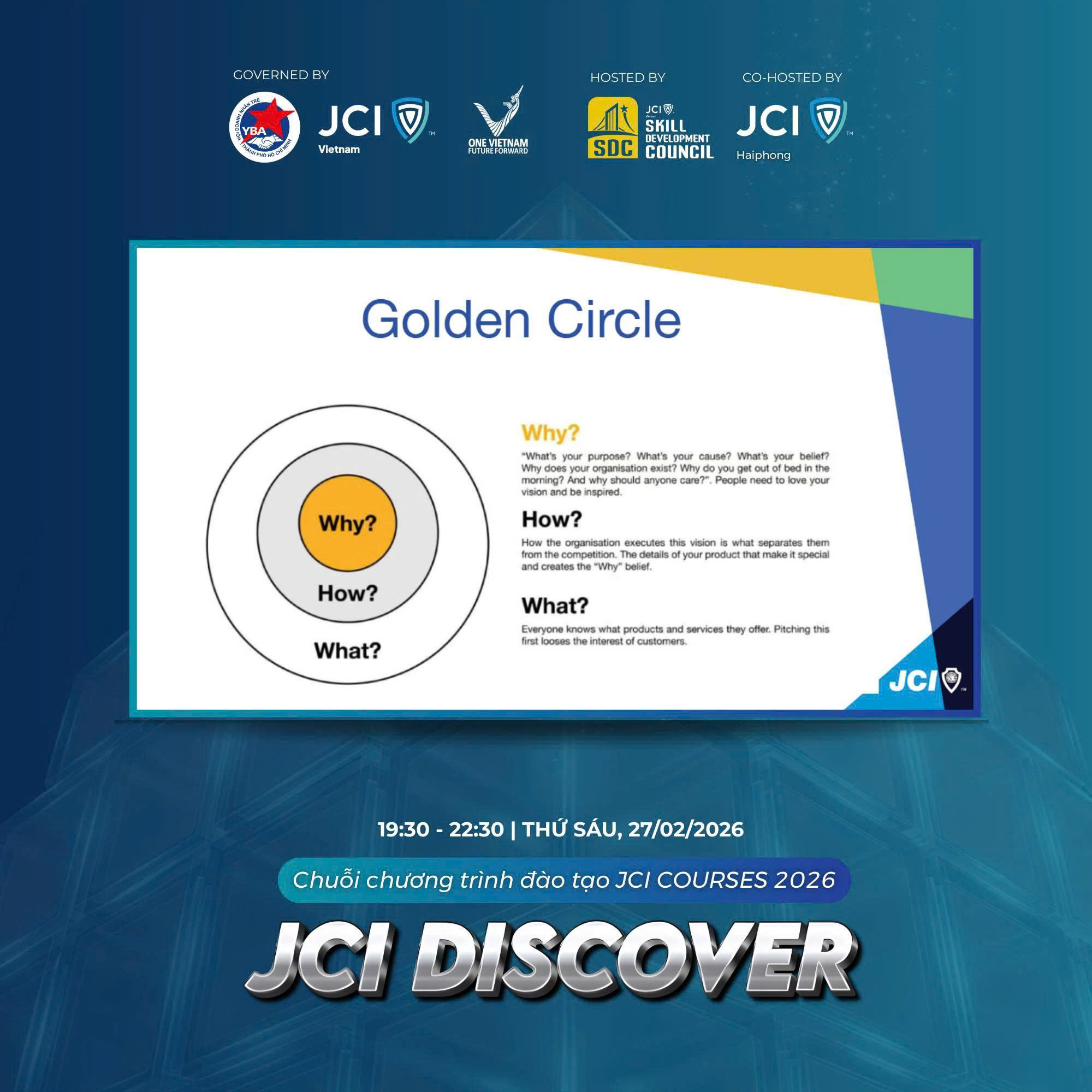 JCI DISCOVER do Hội đồng Phát triển kỹ năng (SDC) thuộc JCI Vietnam 2026 và JCI Haiphong phối hợp tổ chức vào tối ngày 27/02/2026. Chương trình mở đầu cho chuỗi chương trình đào tạo JCI COURSES 2026.